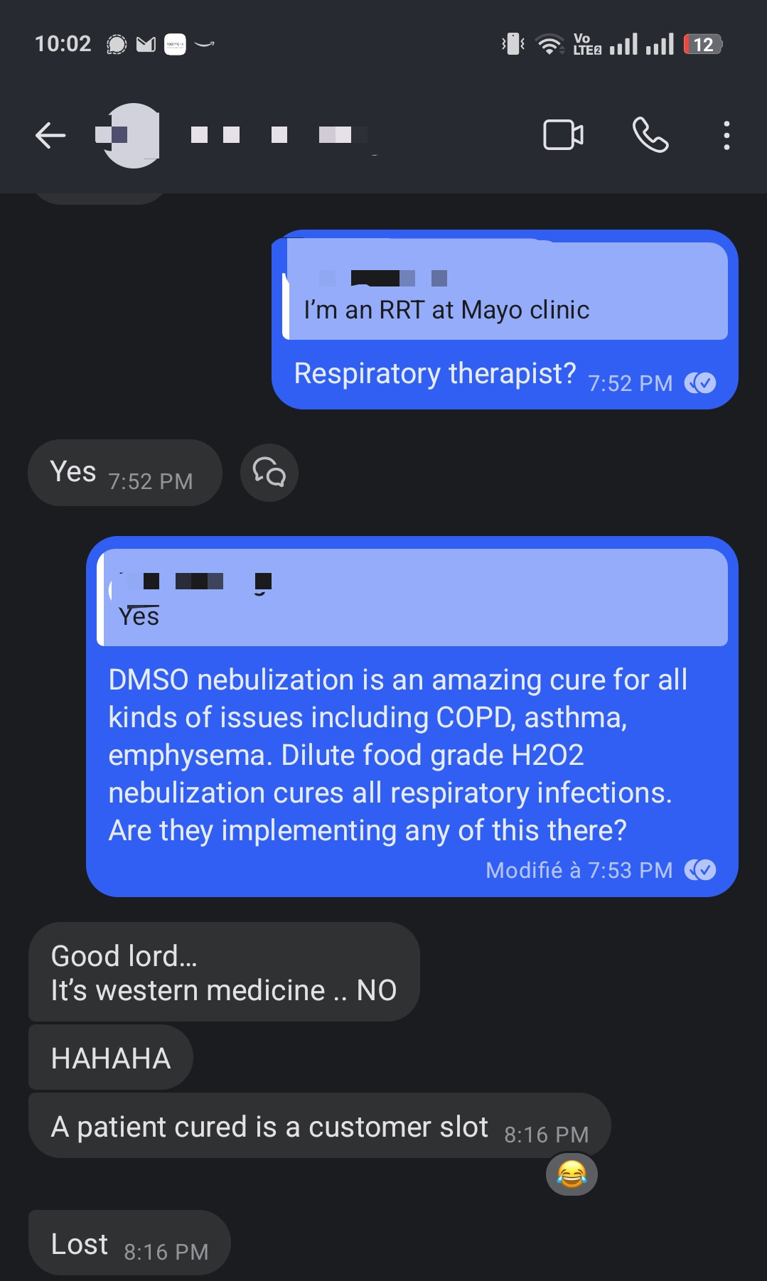 Never go to a hospital for respiratory problems! DMSO and H2O2 cure nearly all of them.
